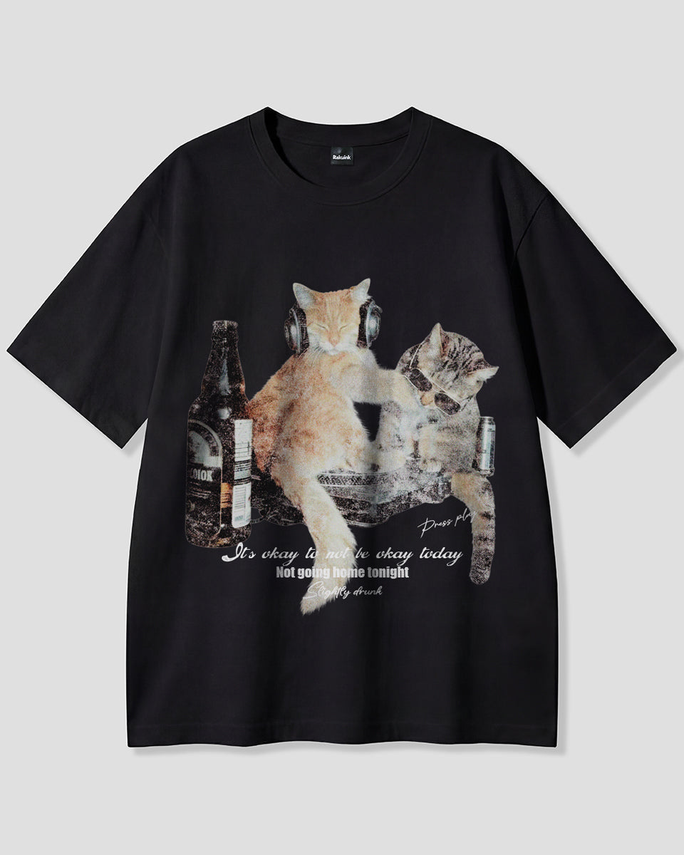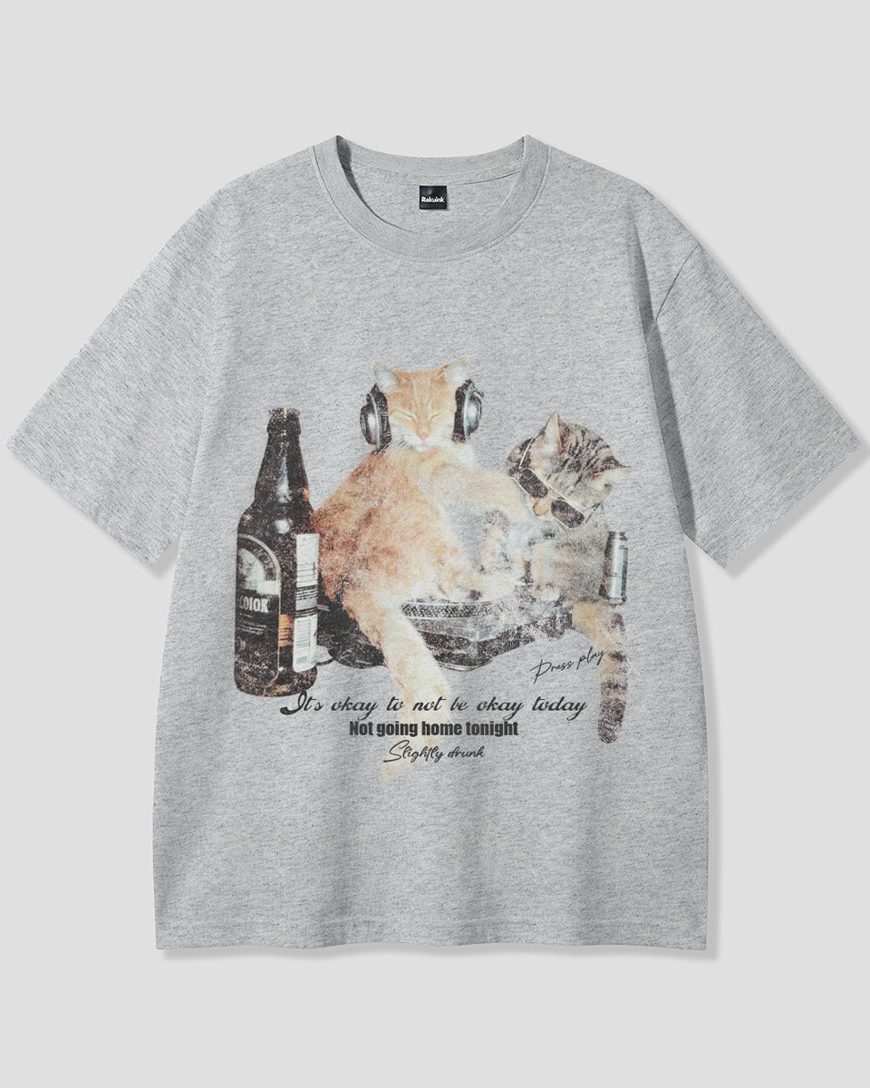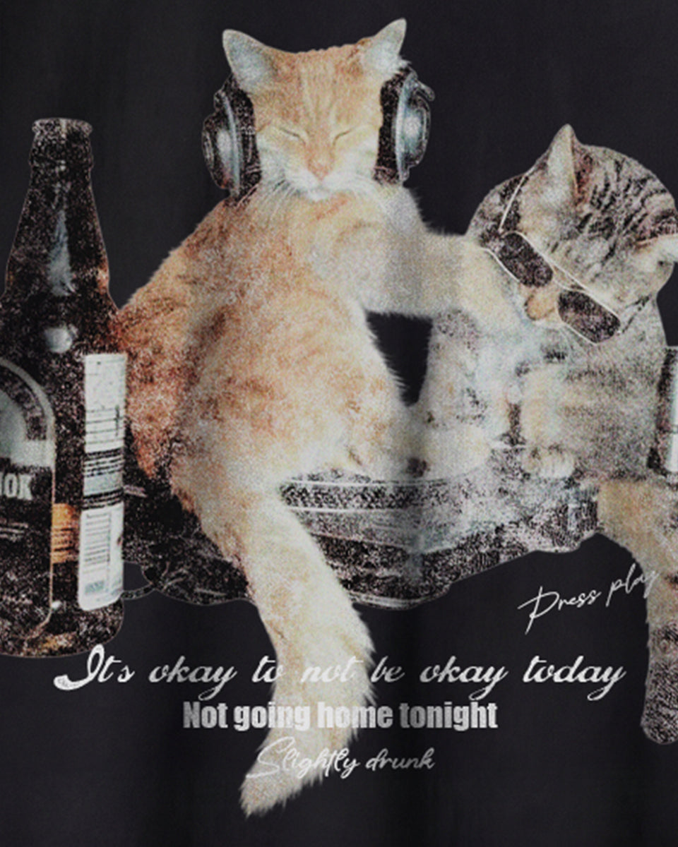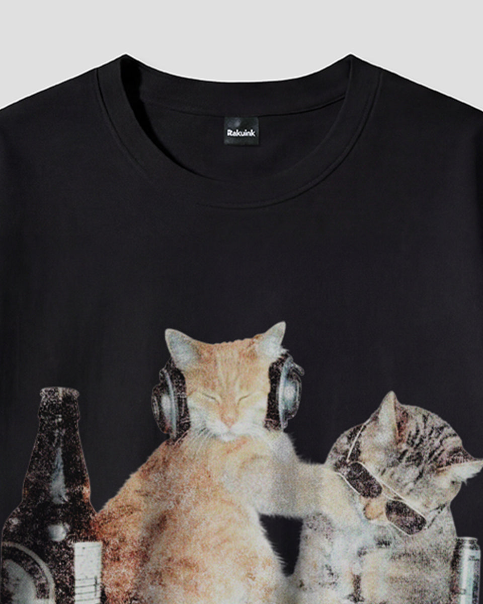 【予約】ナイトパーティーキャット グラフィックTシャツ
