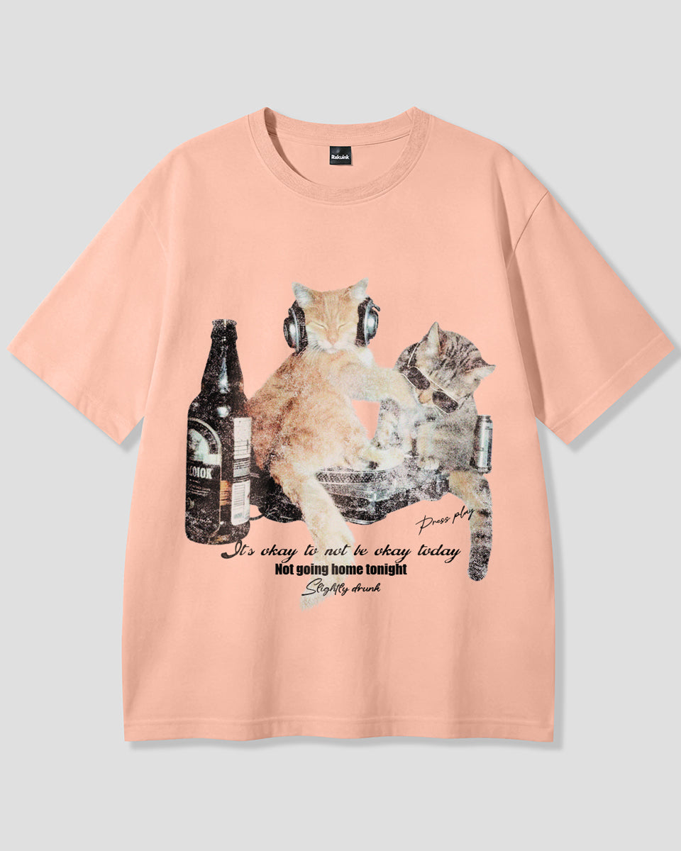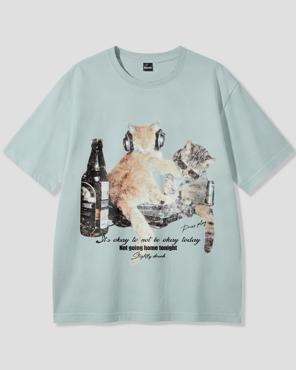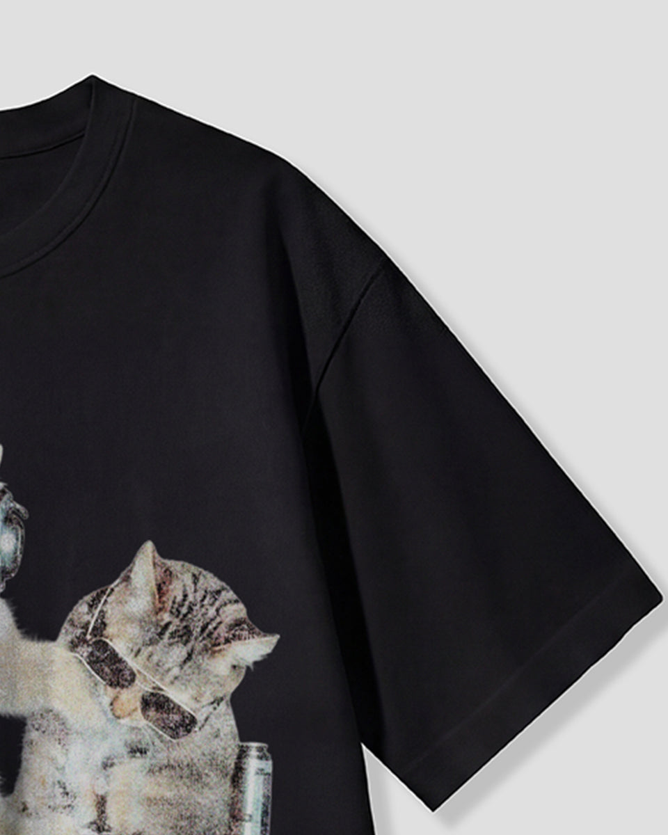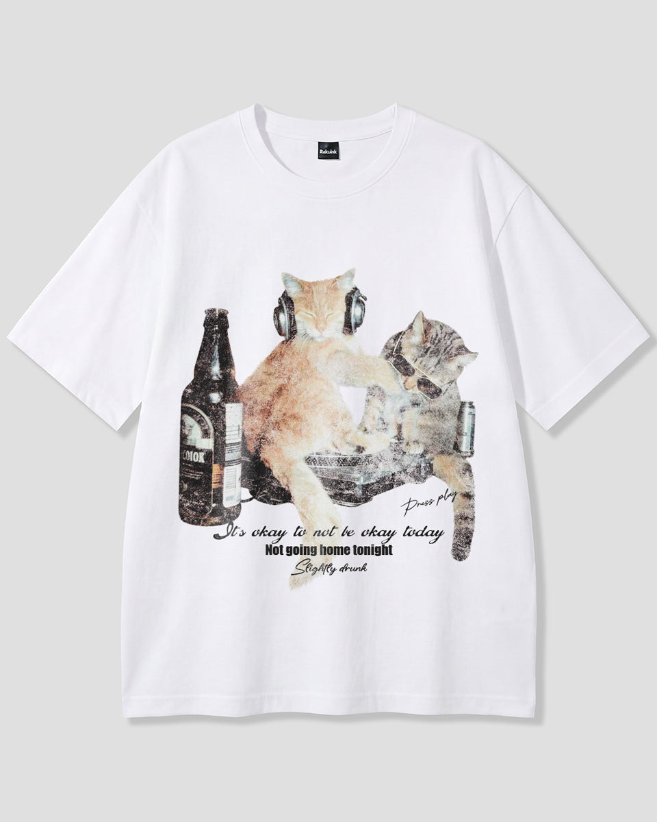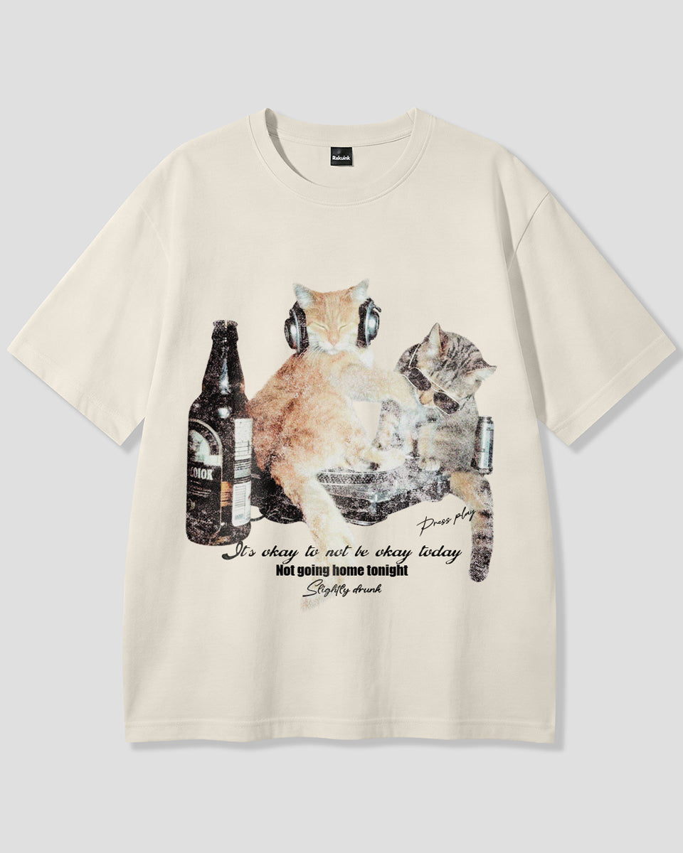 【予約】ナイトパーティーキャット グラフィックTシャツ