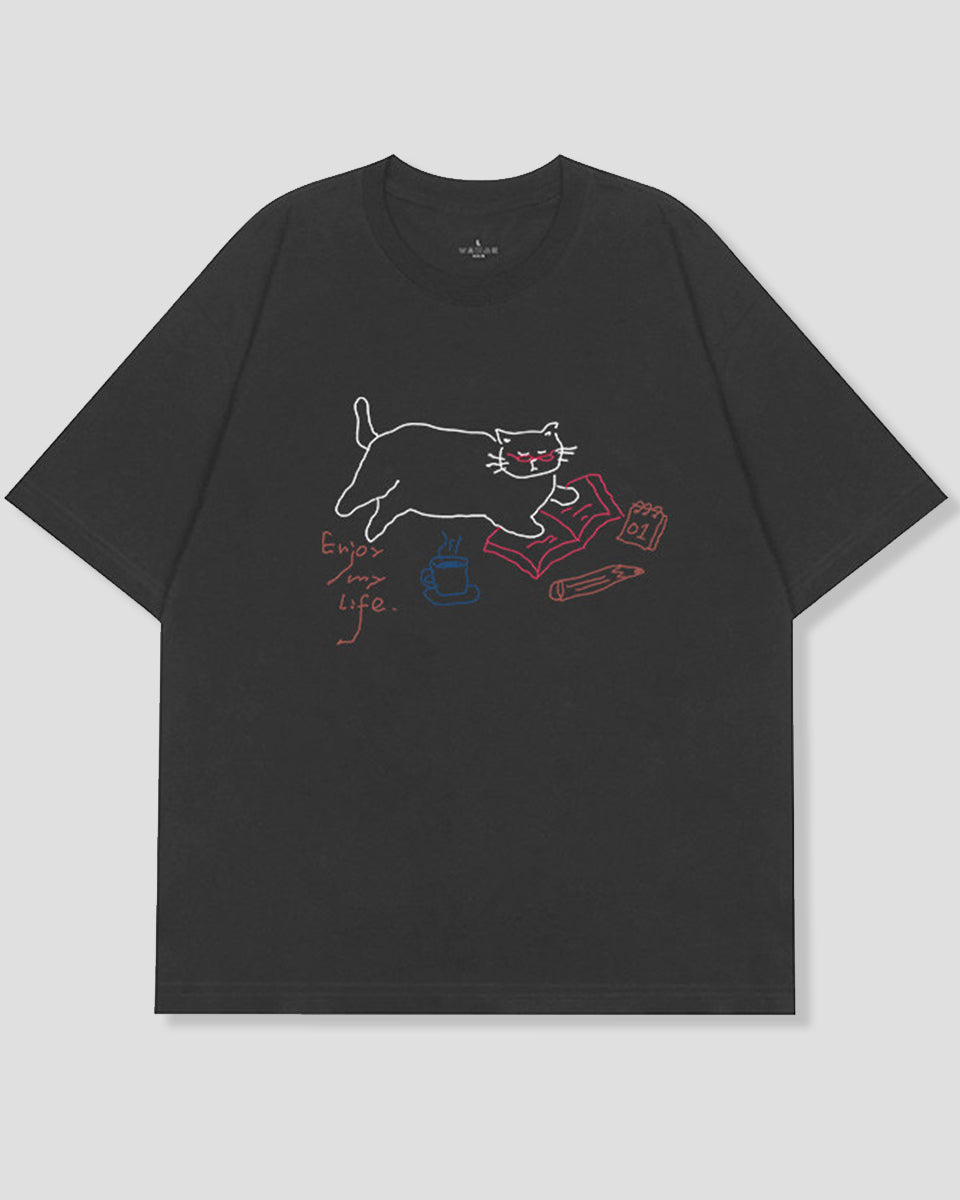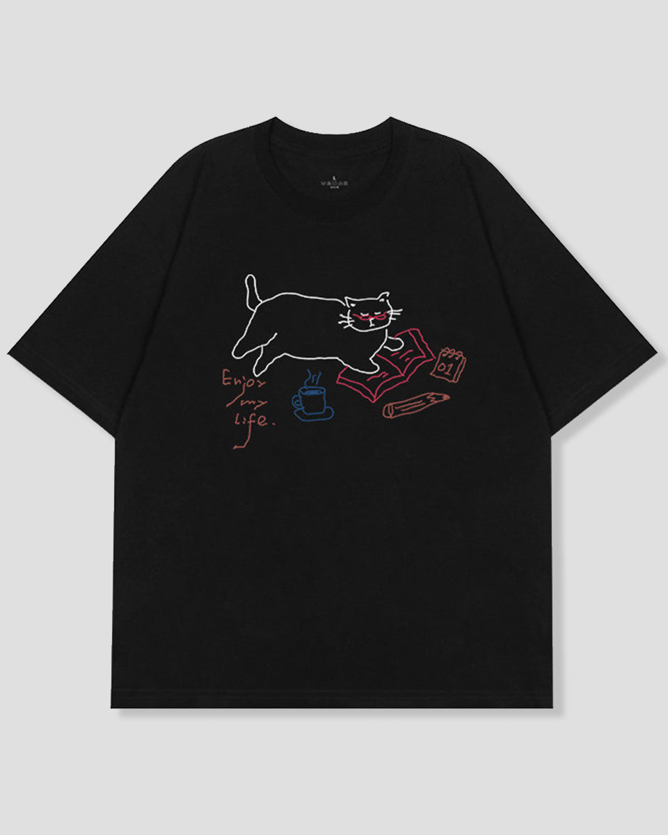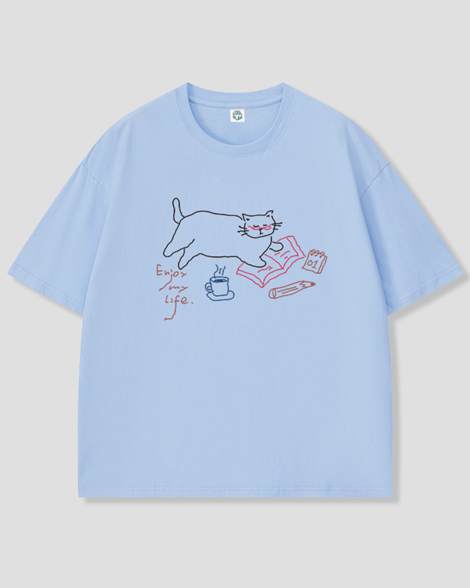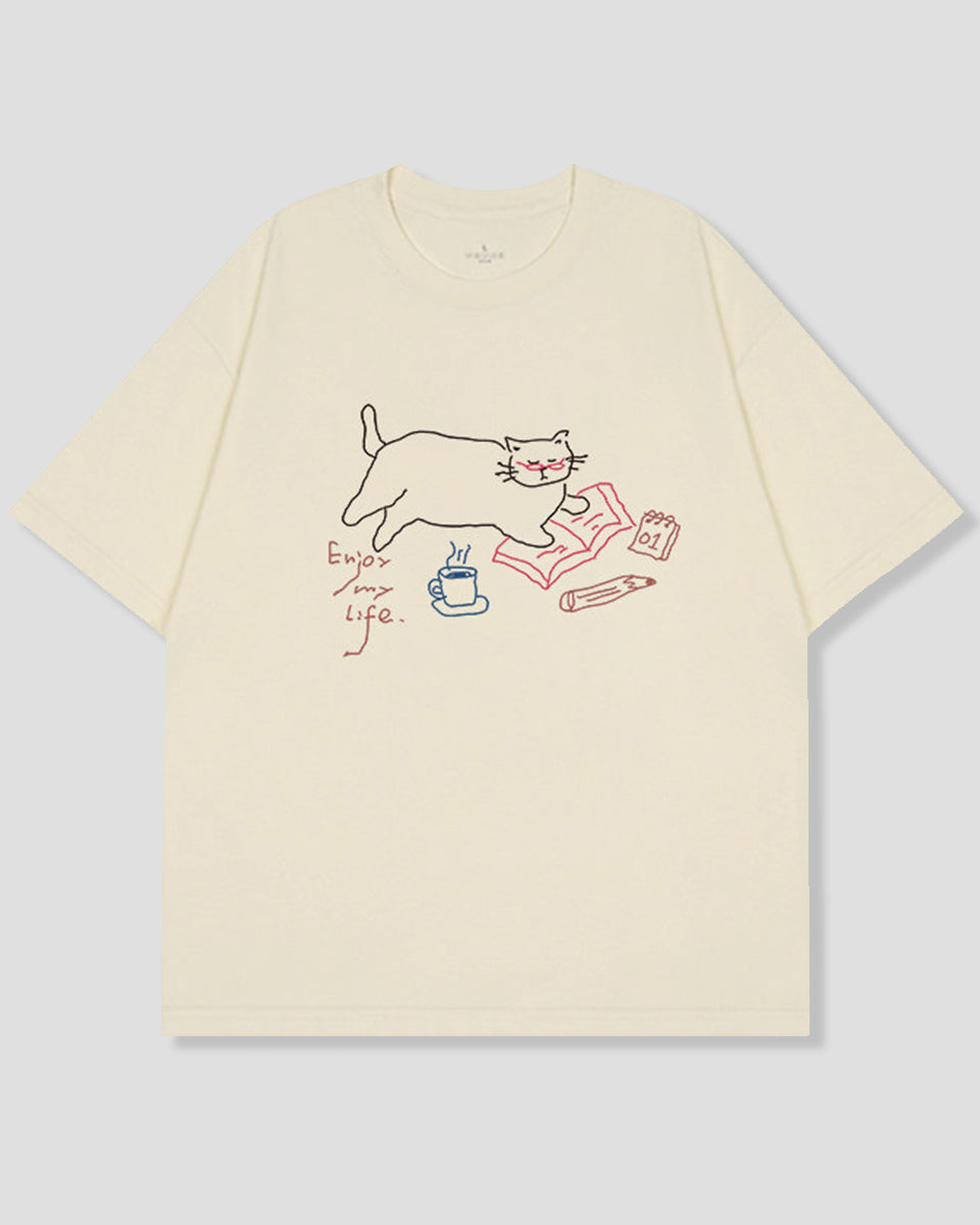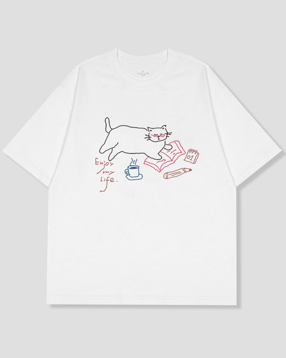 リラックスキャット ラインアートTシャツ