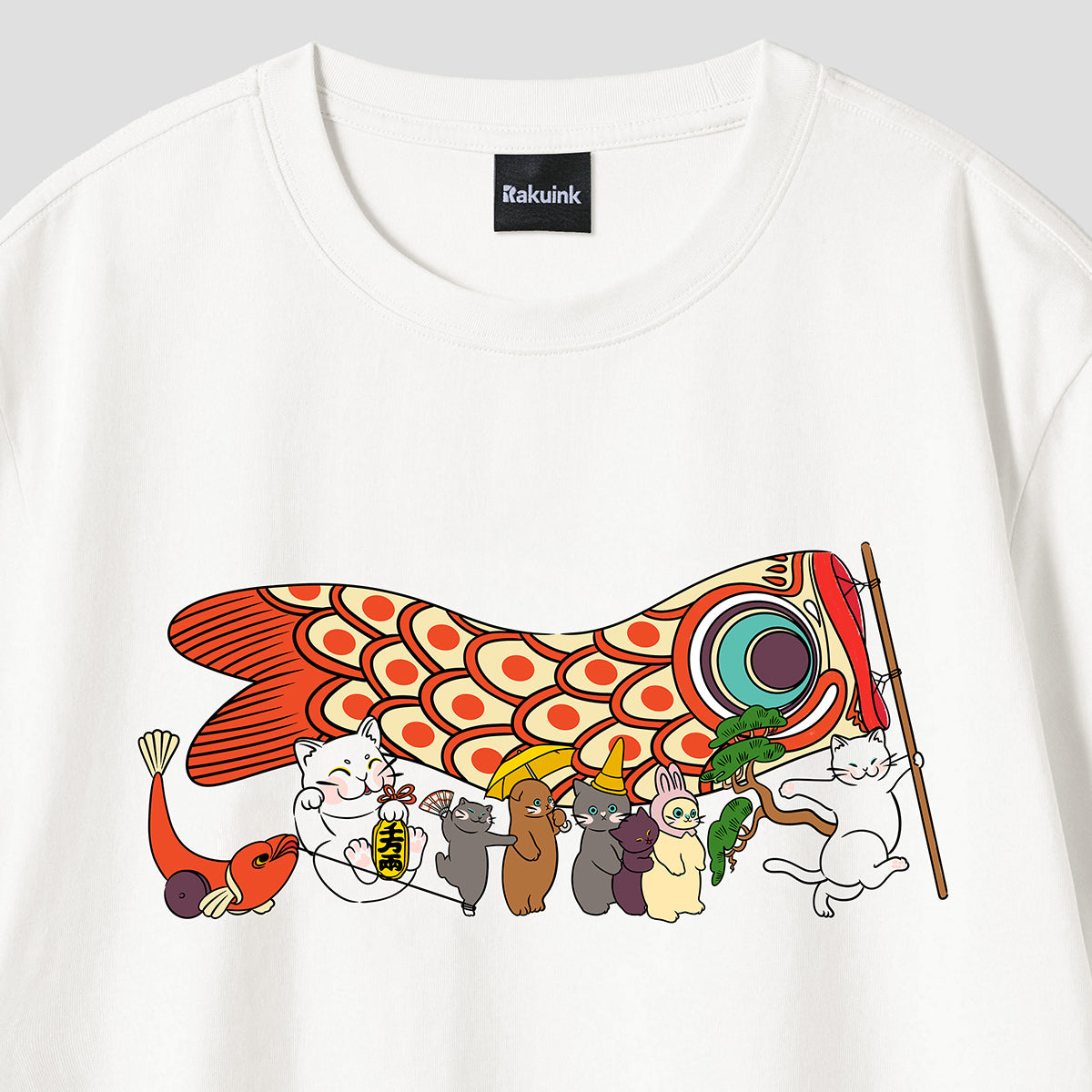 和風猫物語|鯉のぼり行列Tシャツ