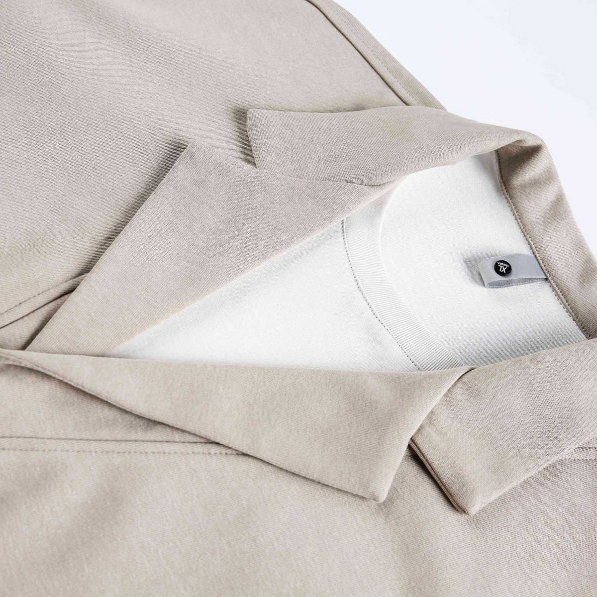 スキッパーネックを採用した立体的な首元設計。