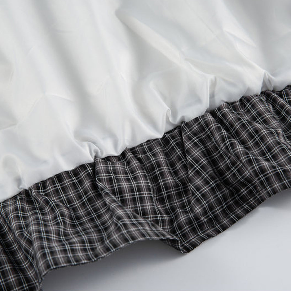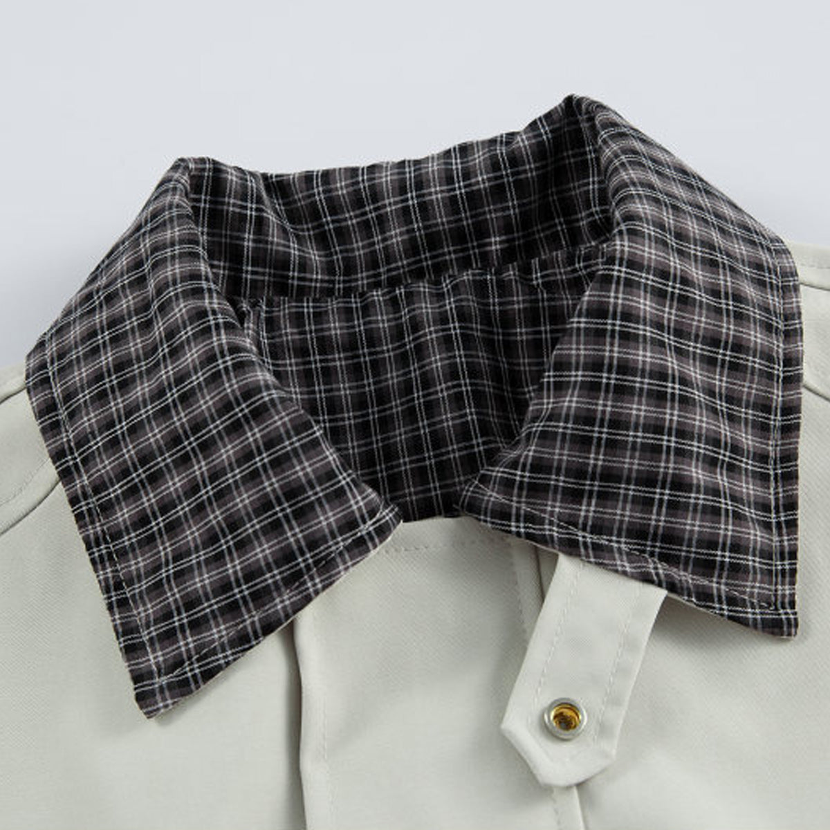 無地とチェックを重ねた、計算されたレイヤード設計。