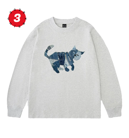 デニムパッチキャット ロングスリーブTシャツ
