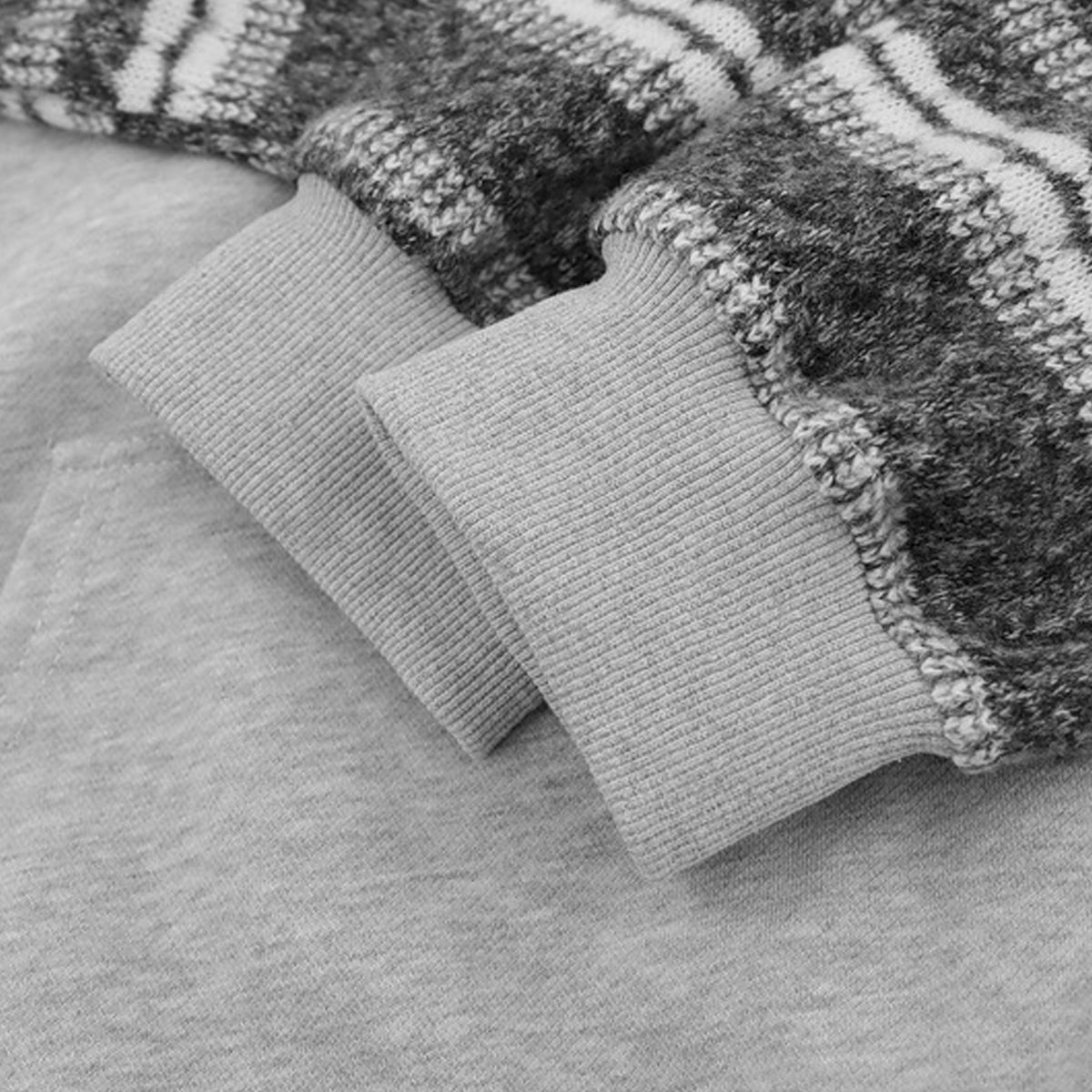 遊び心あるグラフィックに、民族調ストライプの袖が映える。