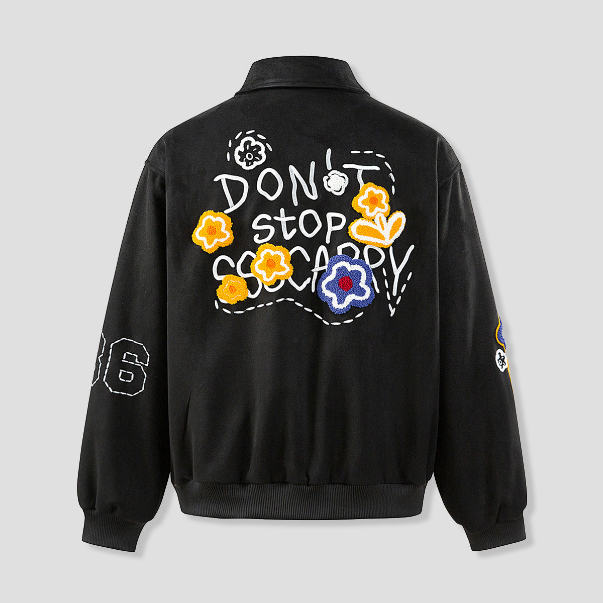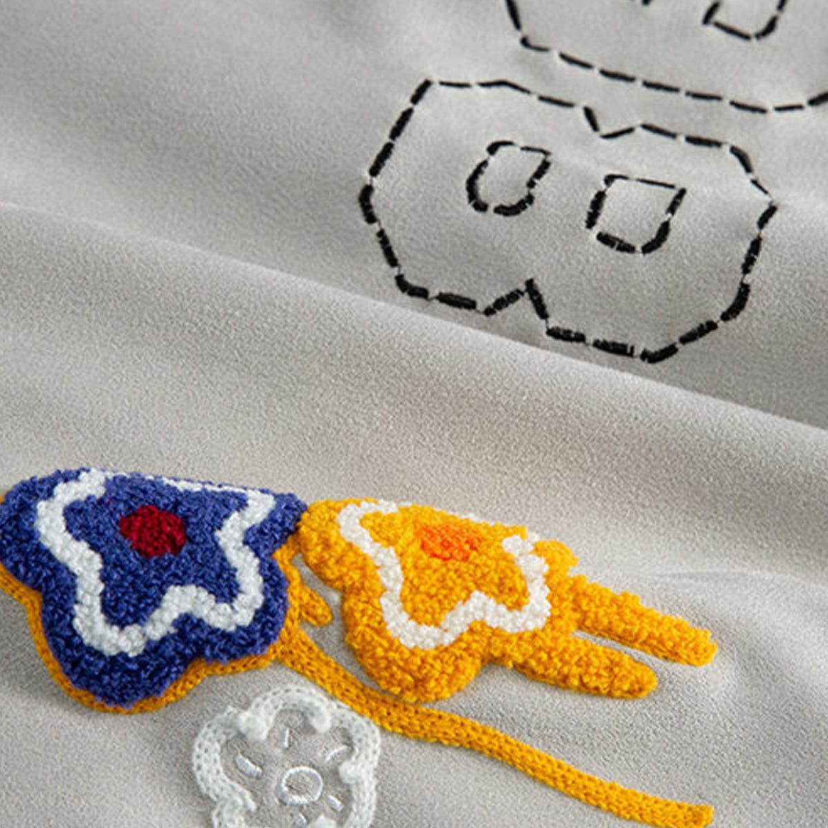 ・立体感のあるフラワーワッペンを大胆に配置。