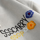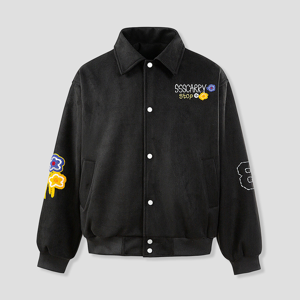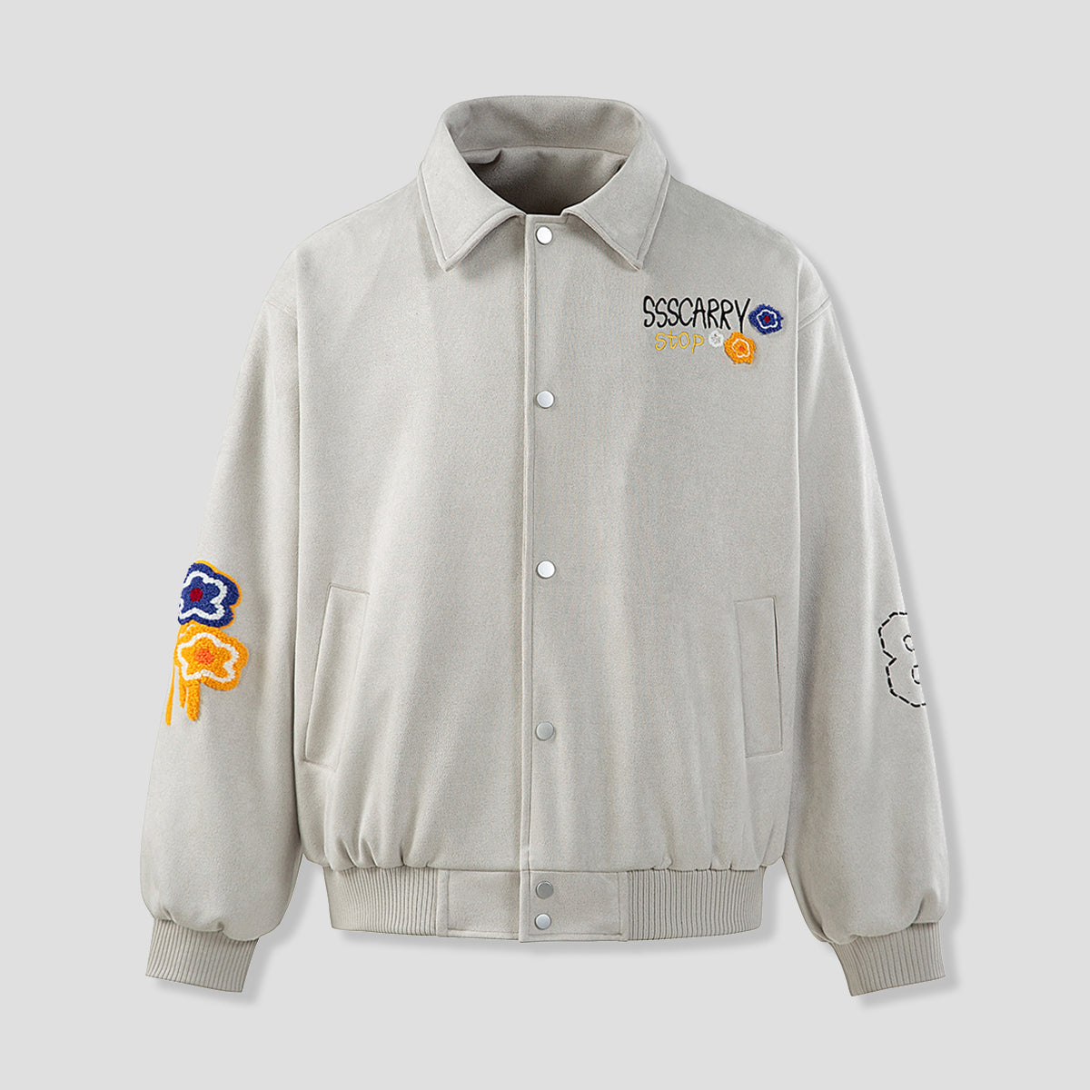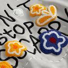 胸元のグラフィックと立体フラワーパッチを主役にしたデザイン。
