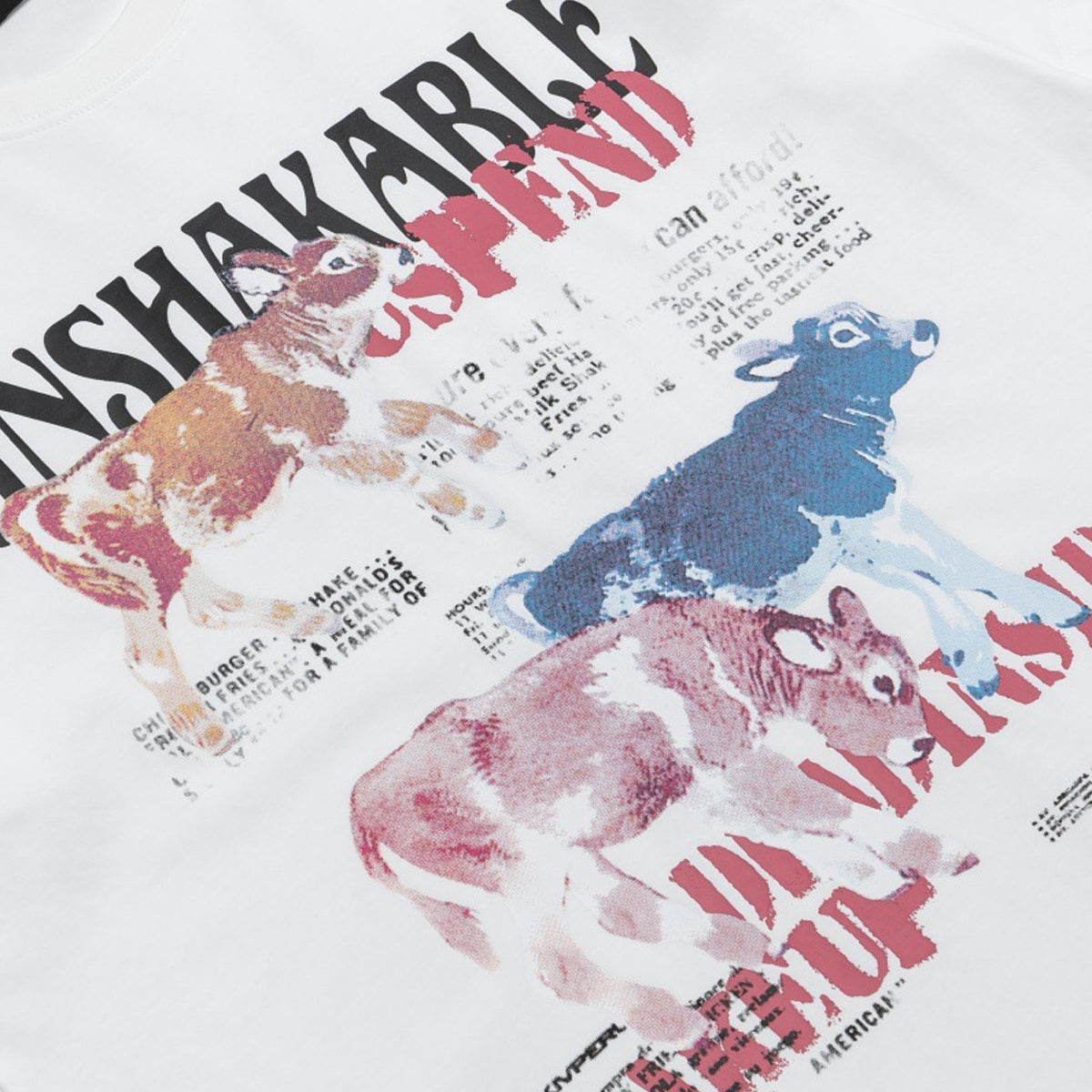 ・ポスターのように重ねられた文字と牛たちの姿。