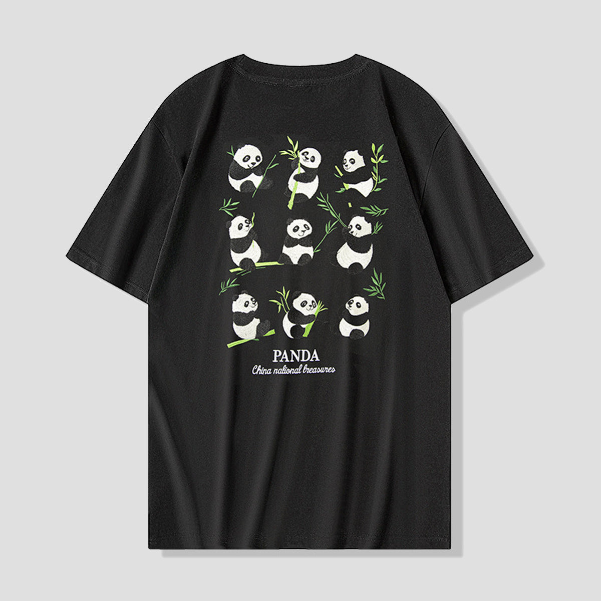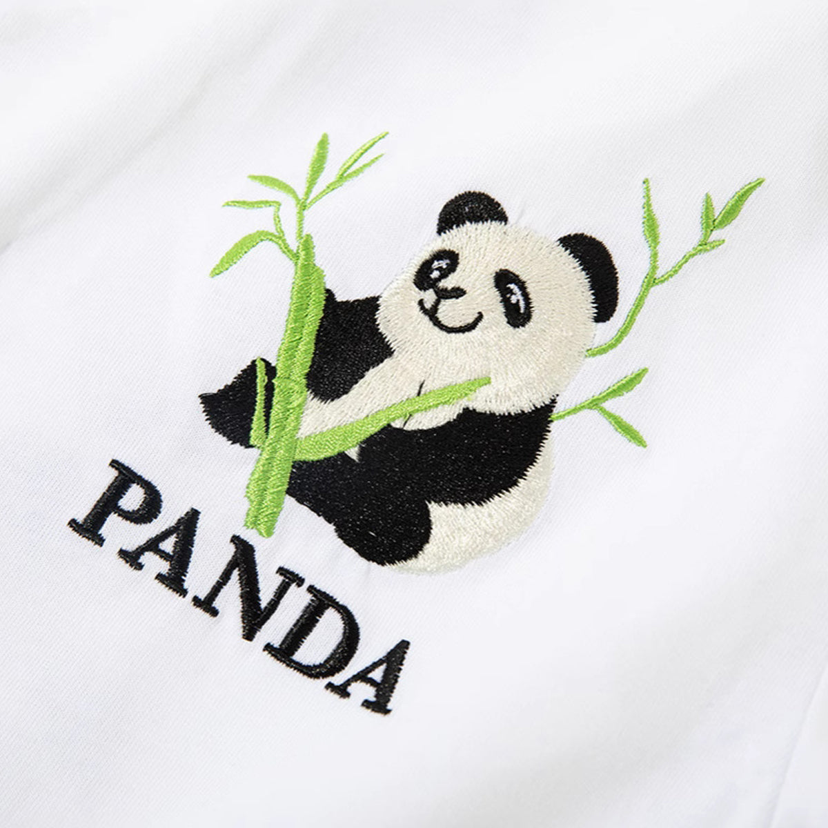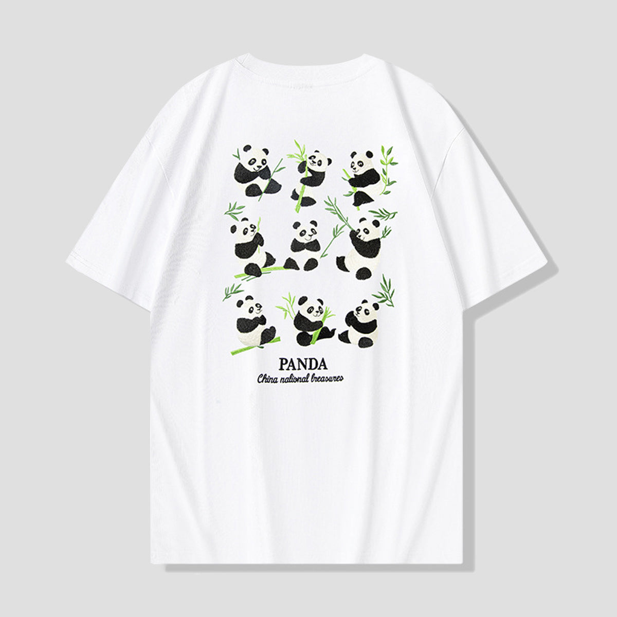 チャイナパンダと竹 刺繍入りTシャツ