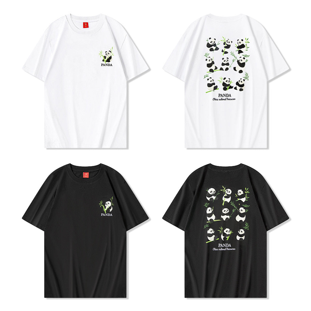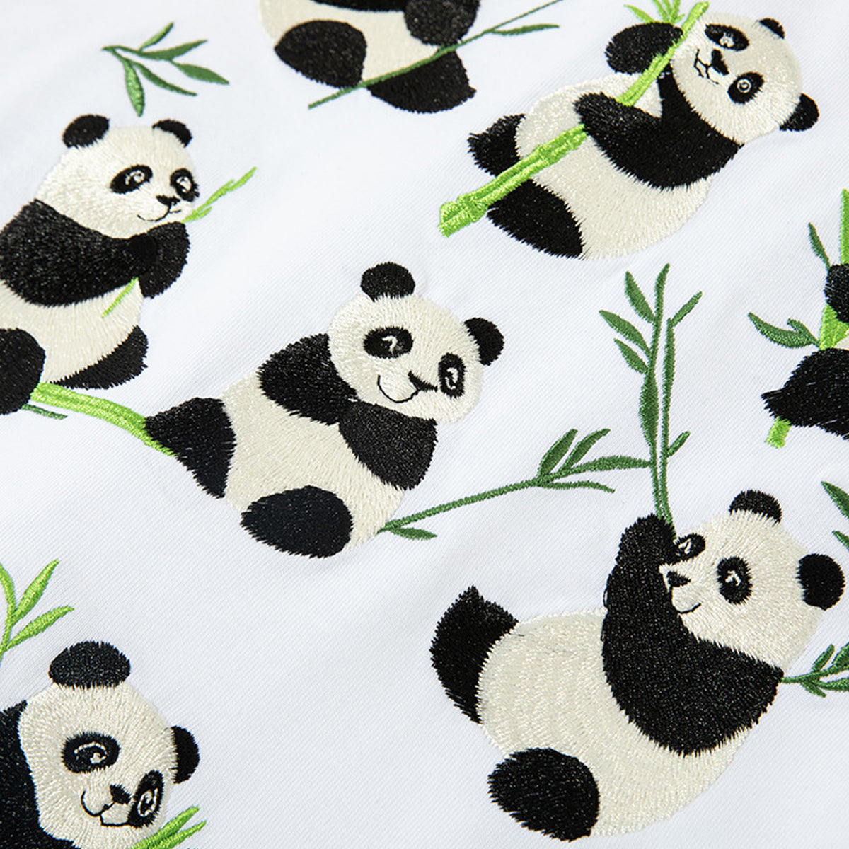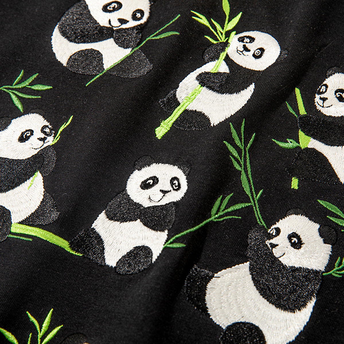 チャイナパンダと竹 刺繍入りTシャツ