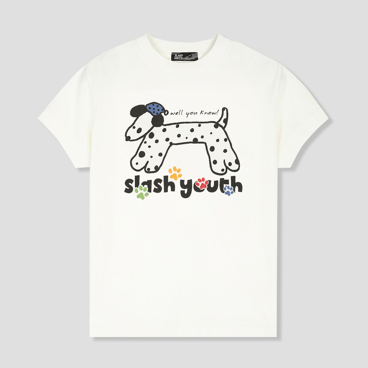 「well you know!」のさりげないメッセージと、カラフルな爪跡が遊び心を添え、