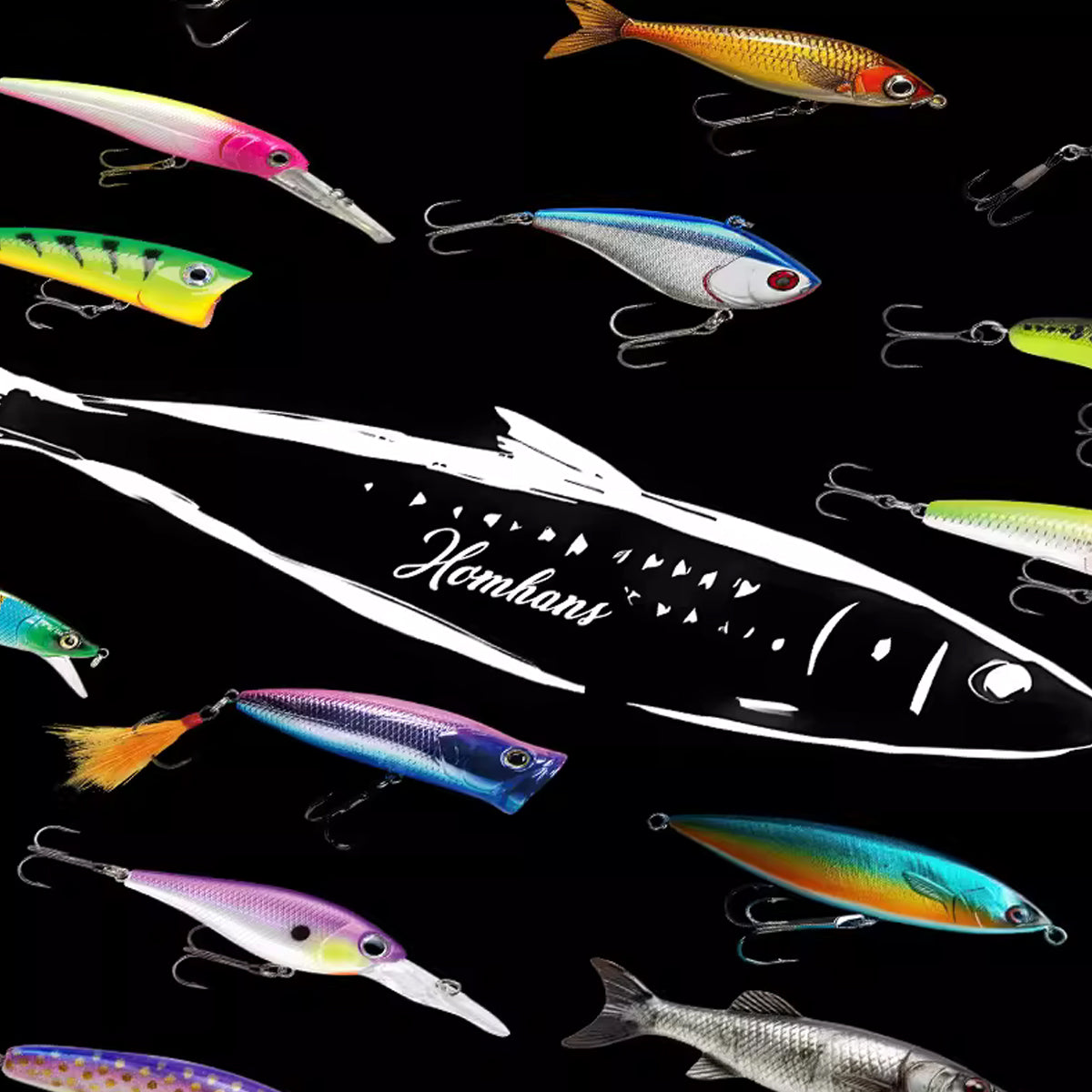 ・バックにはルアーを並べたグラフィック。