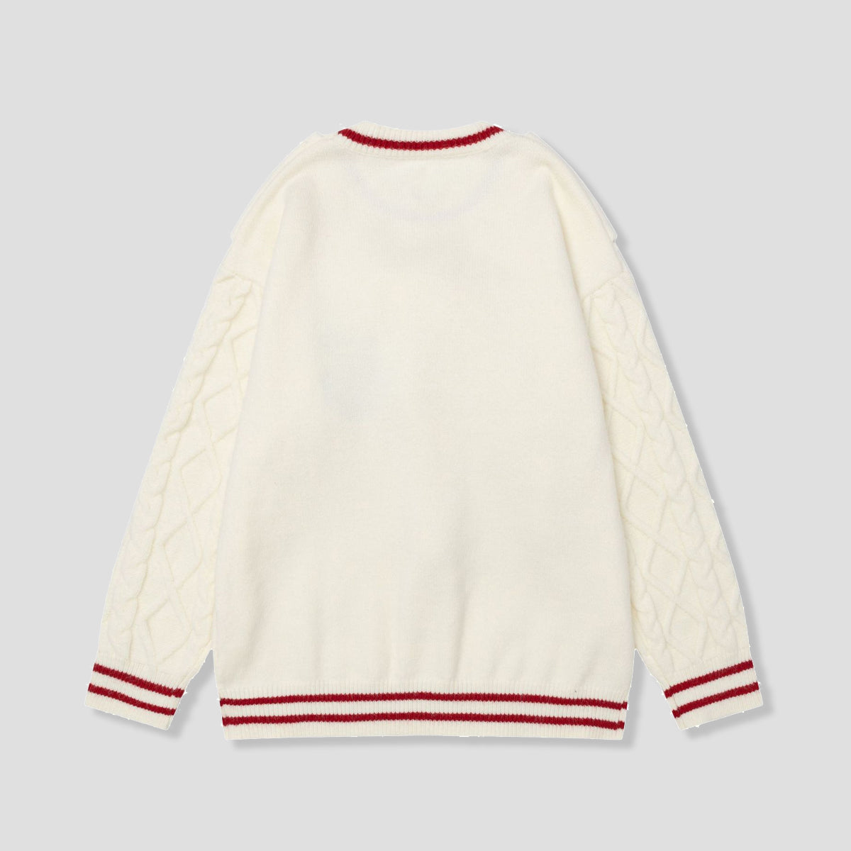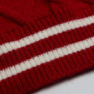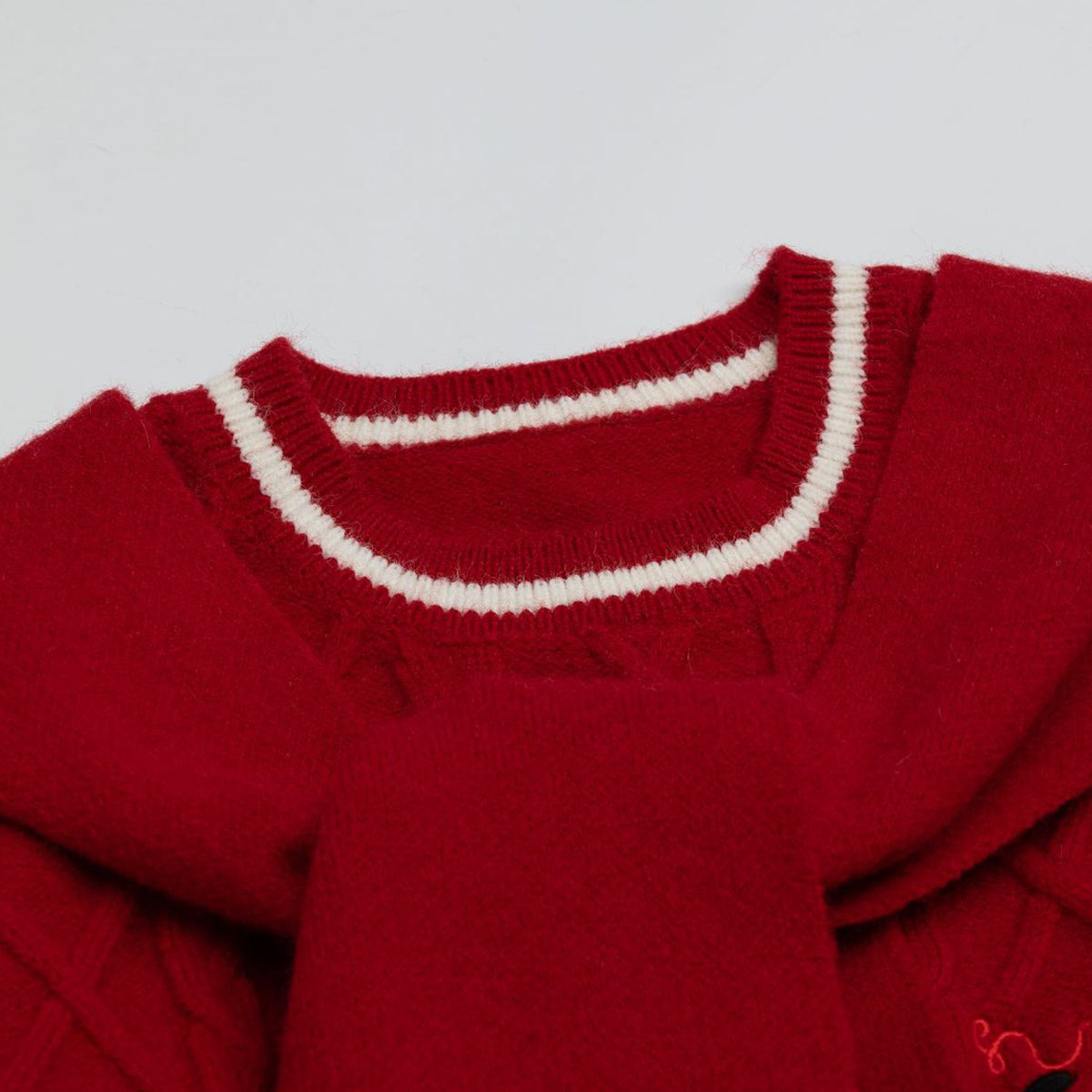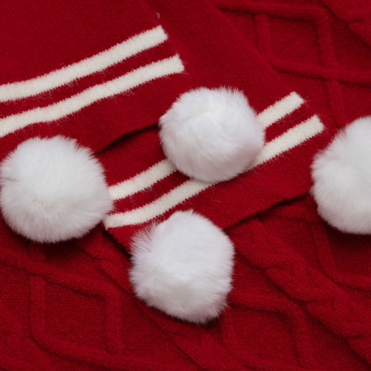 ・赤いストライプとポンポンマフラーがアクセント。