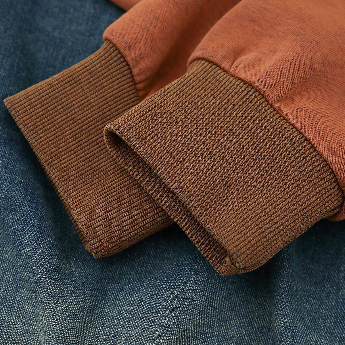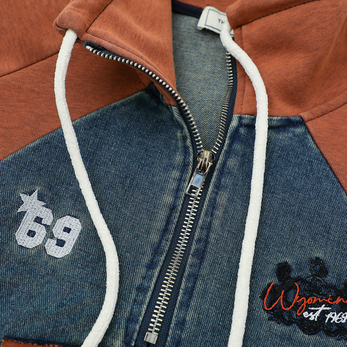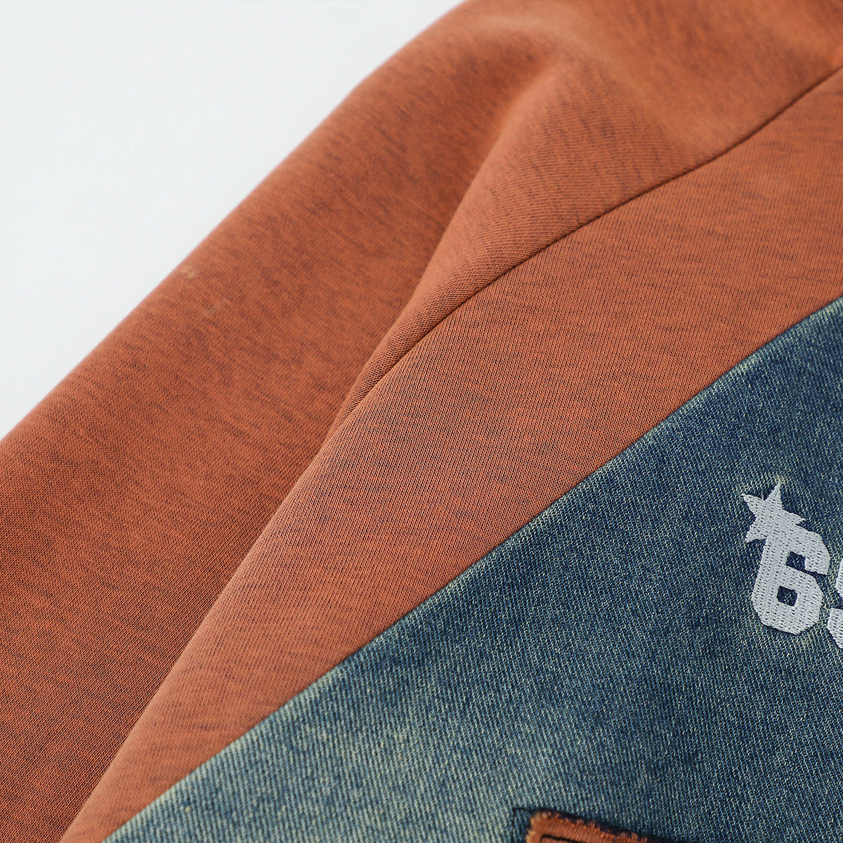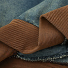 ブラウン×ブルーの切り替え配色がストリートムードを演出。