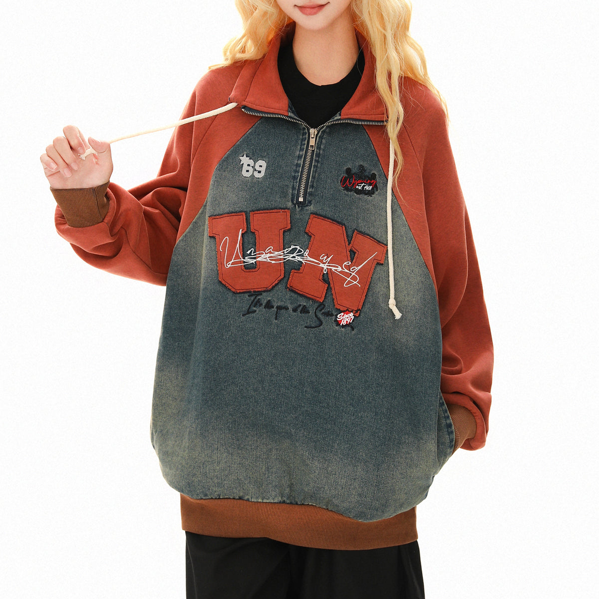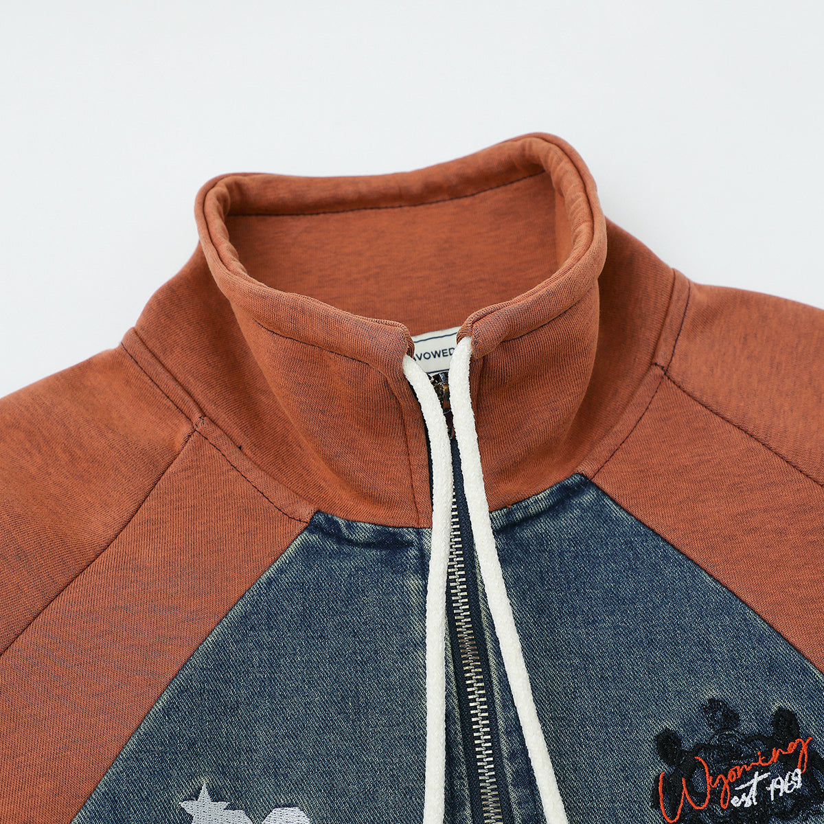 デニムブロック レタリング ハーフジップスウェット