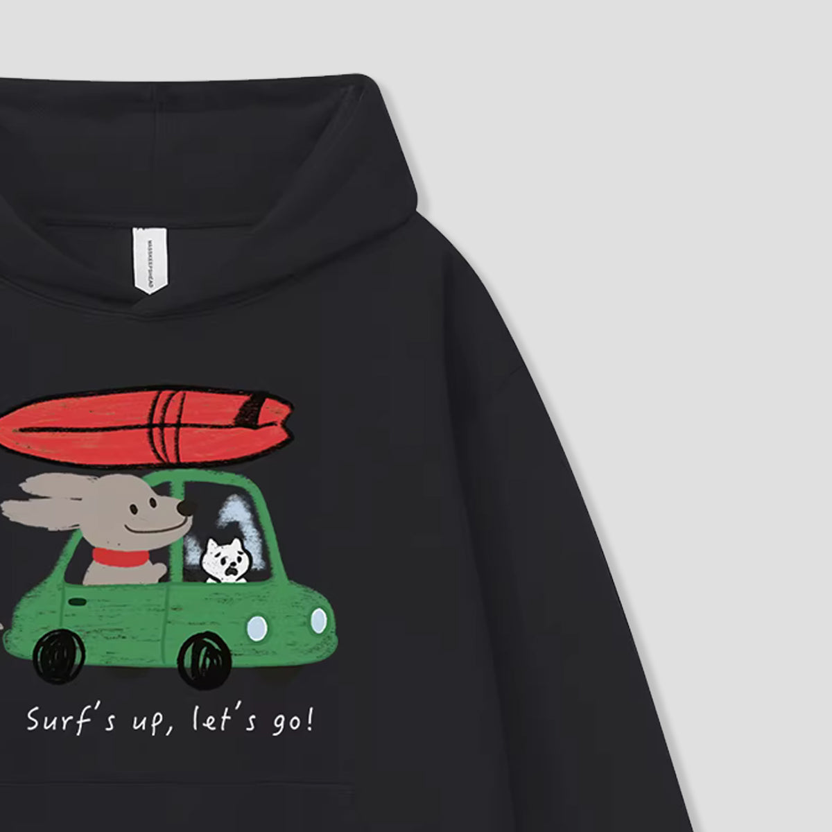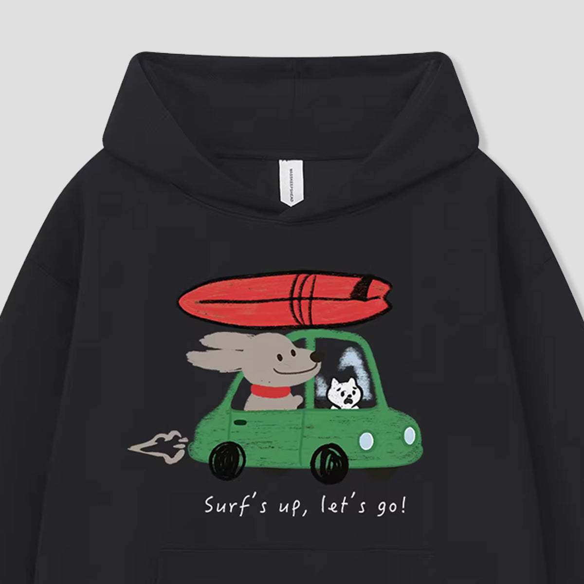 ・サーフボード×カー×アニマルのポップな主役プリント。