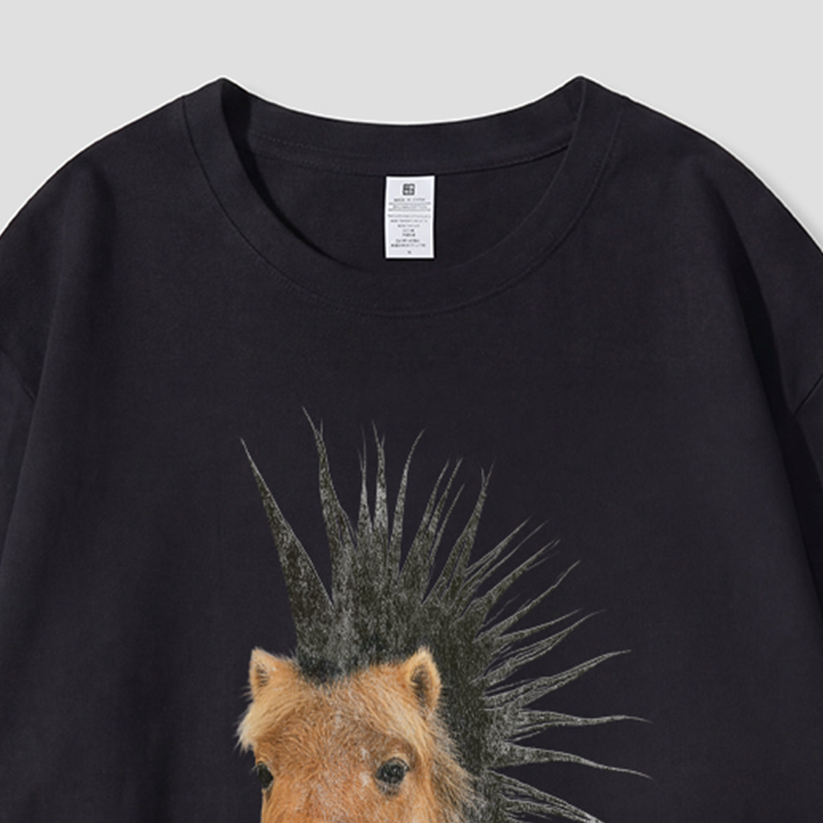 ・リアルなタッチで描いた子馬×モヒカンのインパクト。