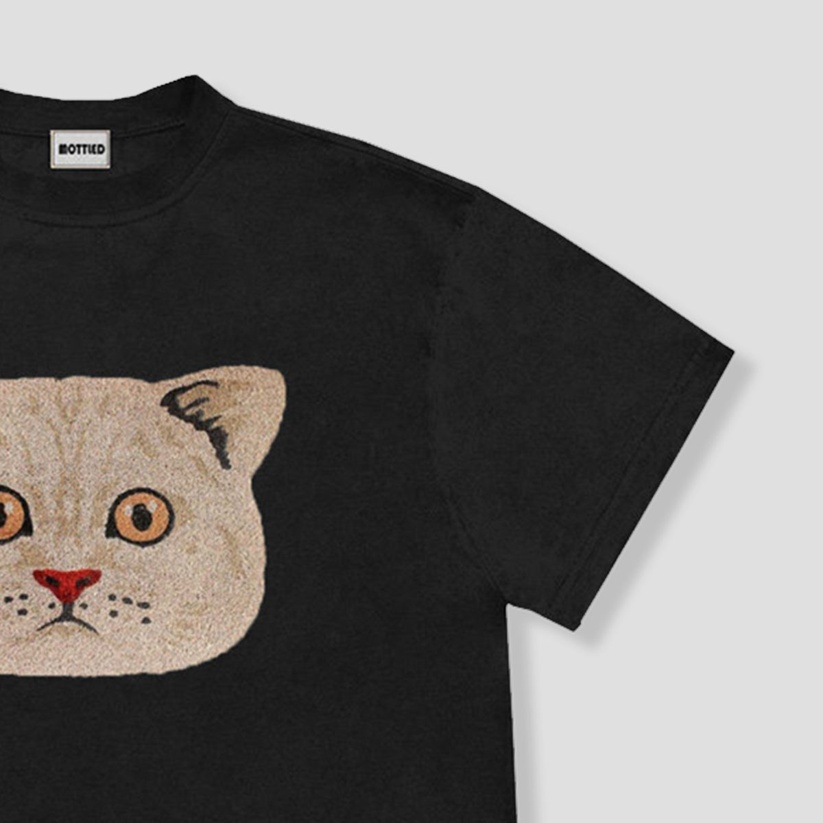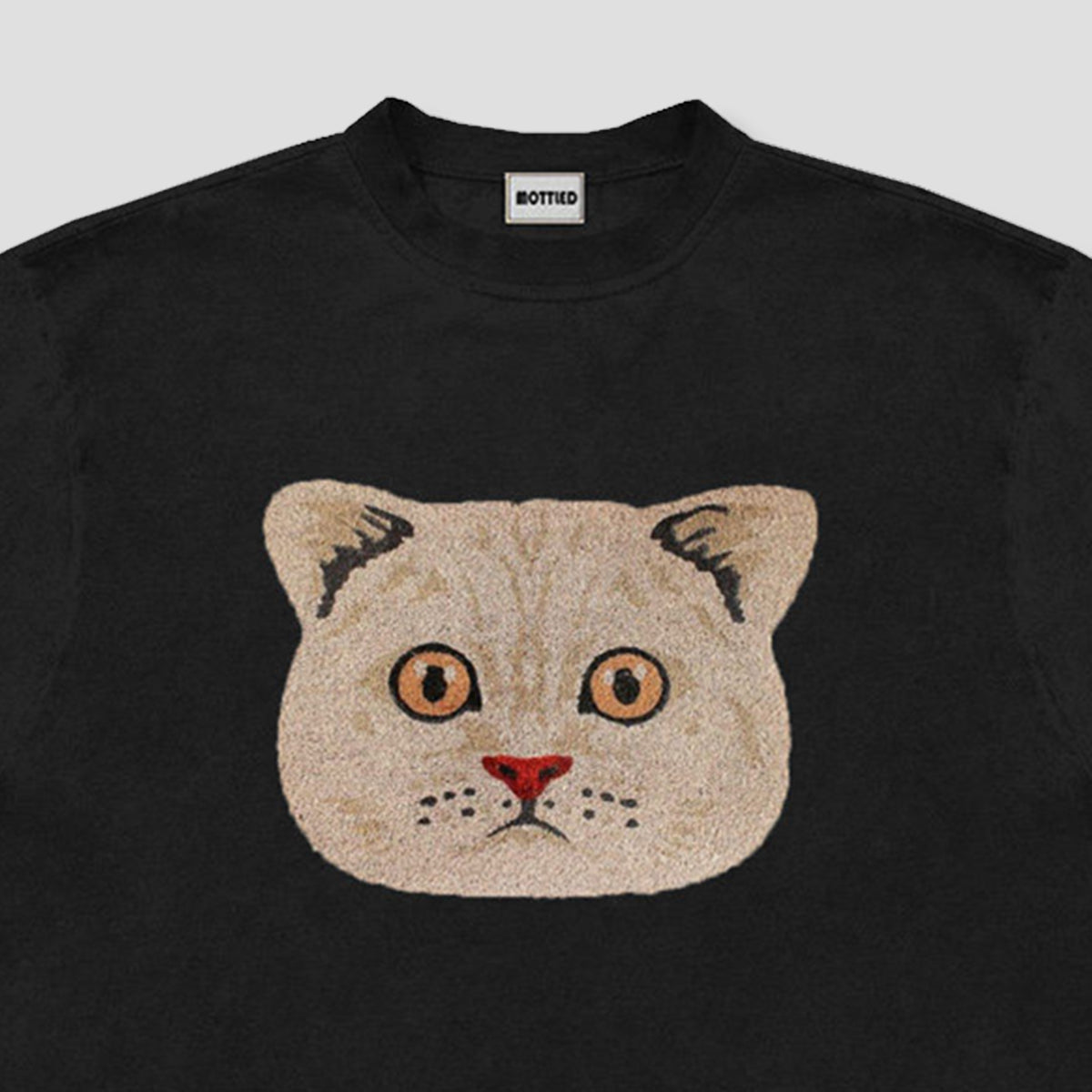・中央に大胆配置された猫フェイスが主役のデザイン。
