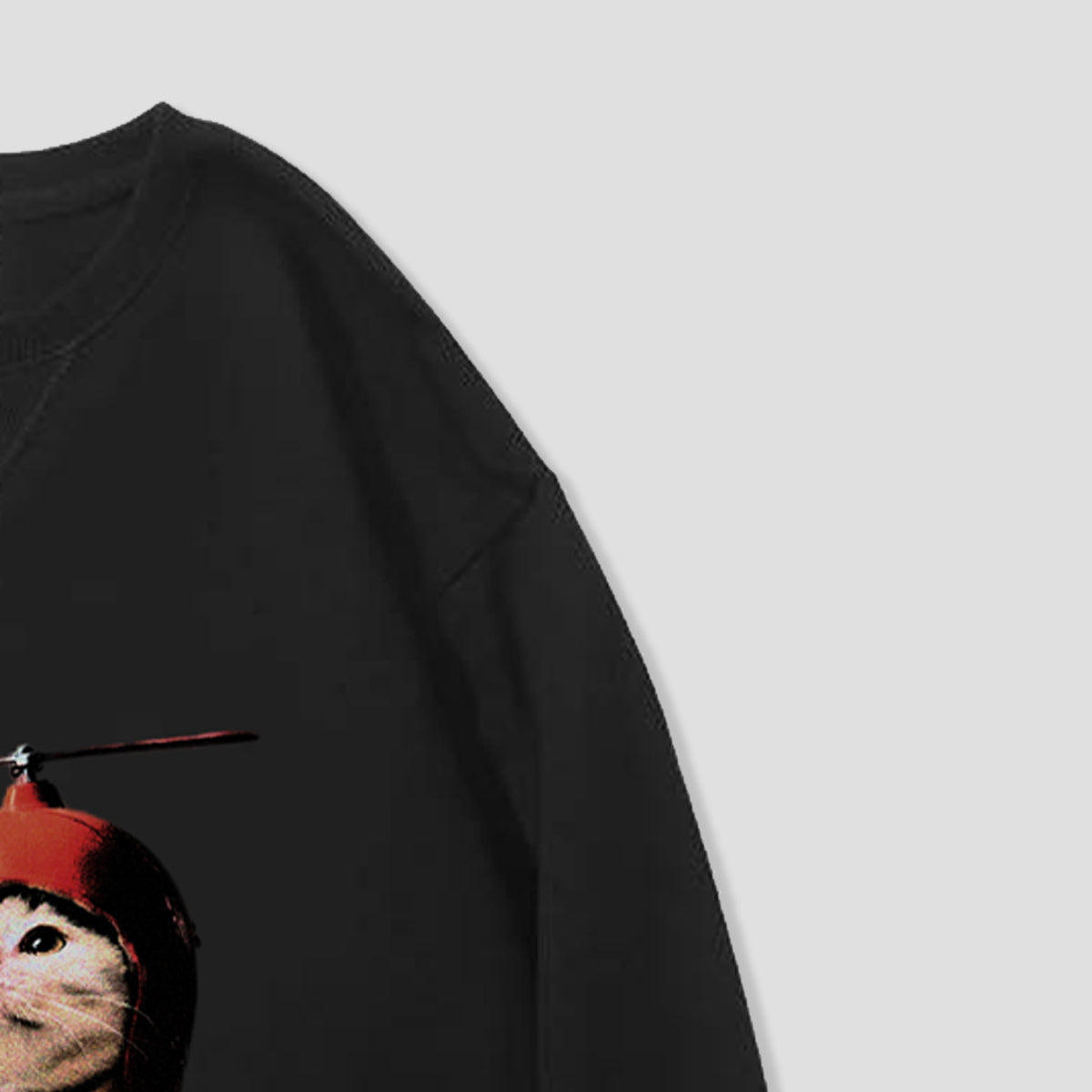 ・竹トンボをかぶったネコのグラフィック。