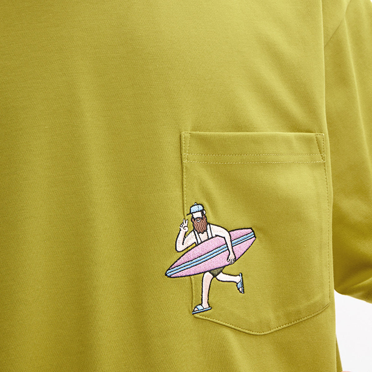 ・胸ポケットにちょこんと佇む、刺繍キャラクター。