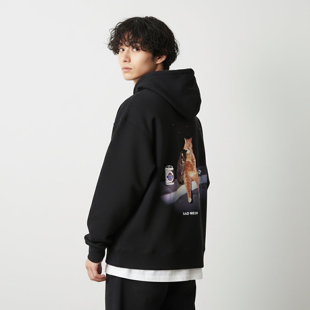 SAD MEOW バックプリント パーカー
