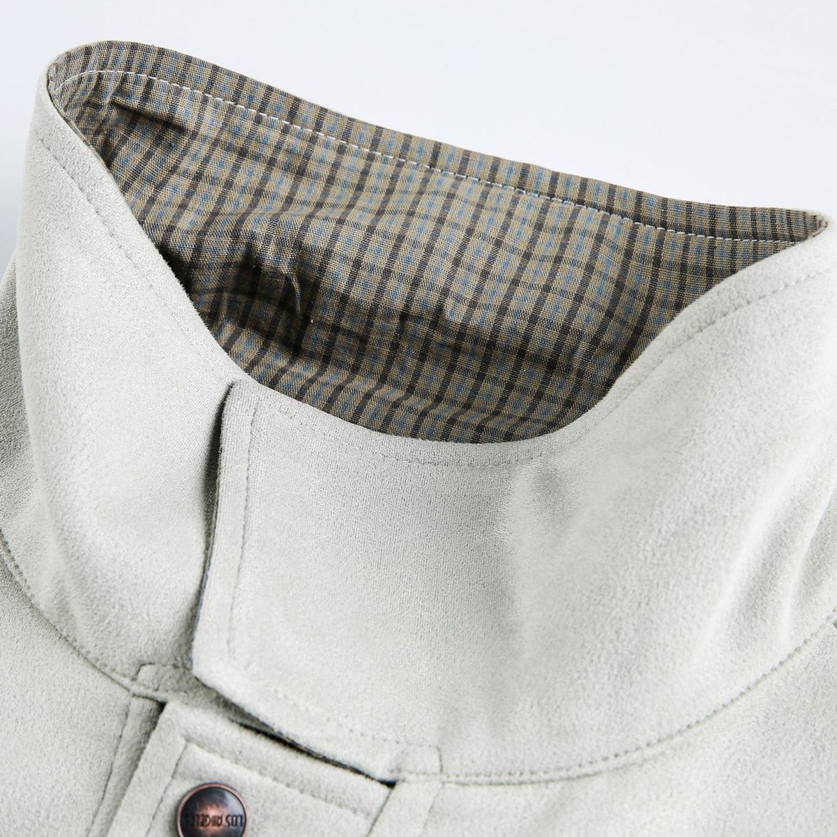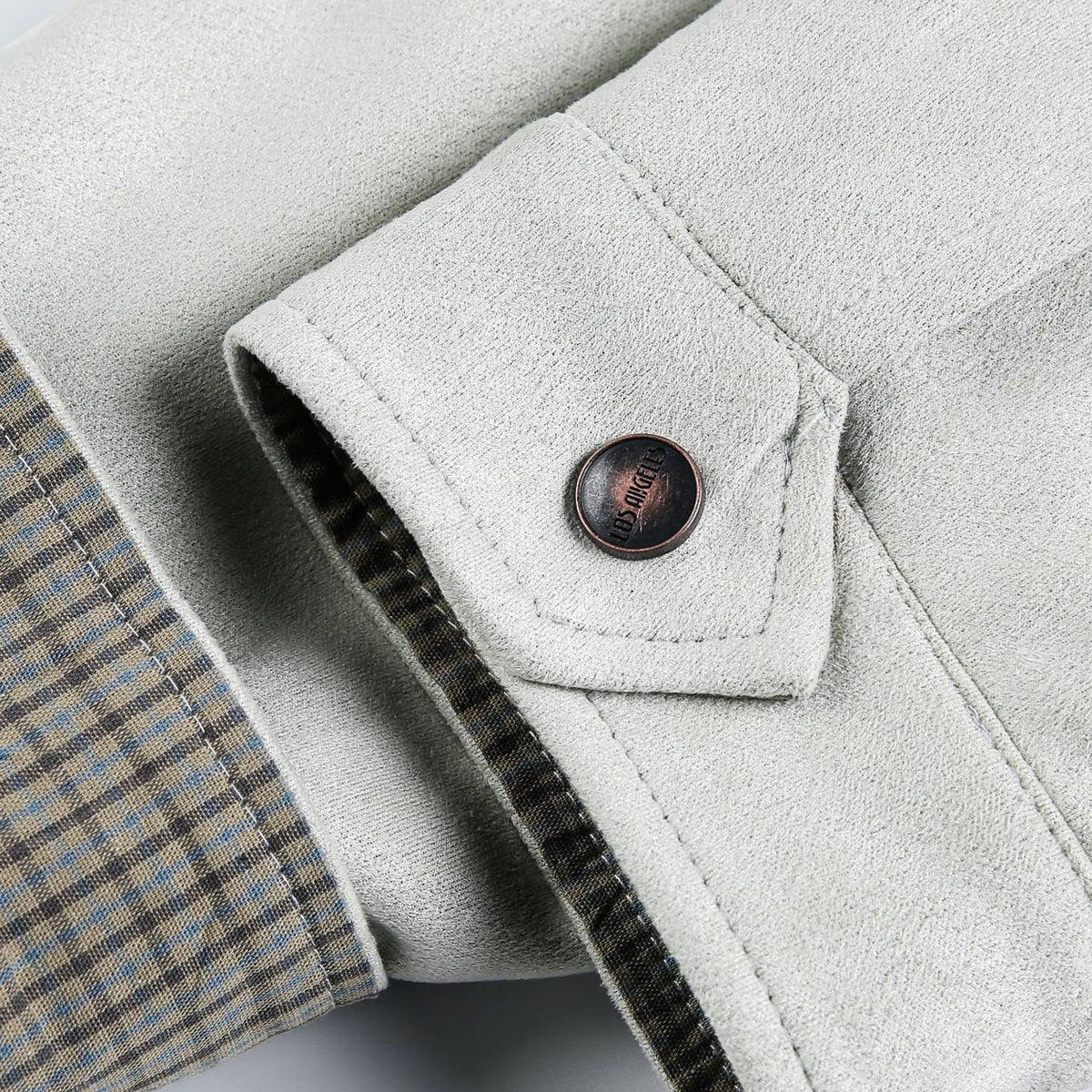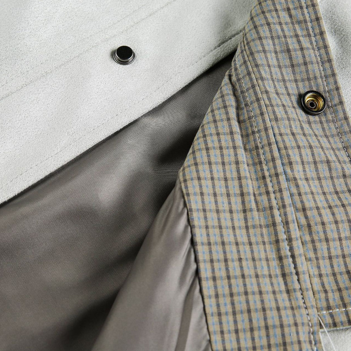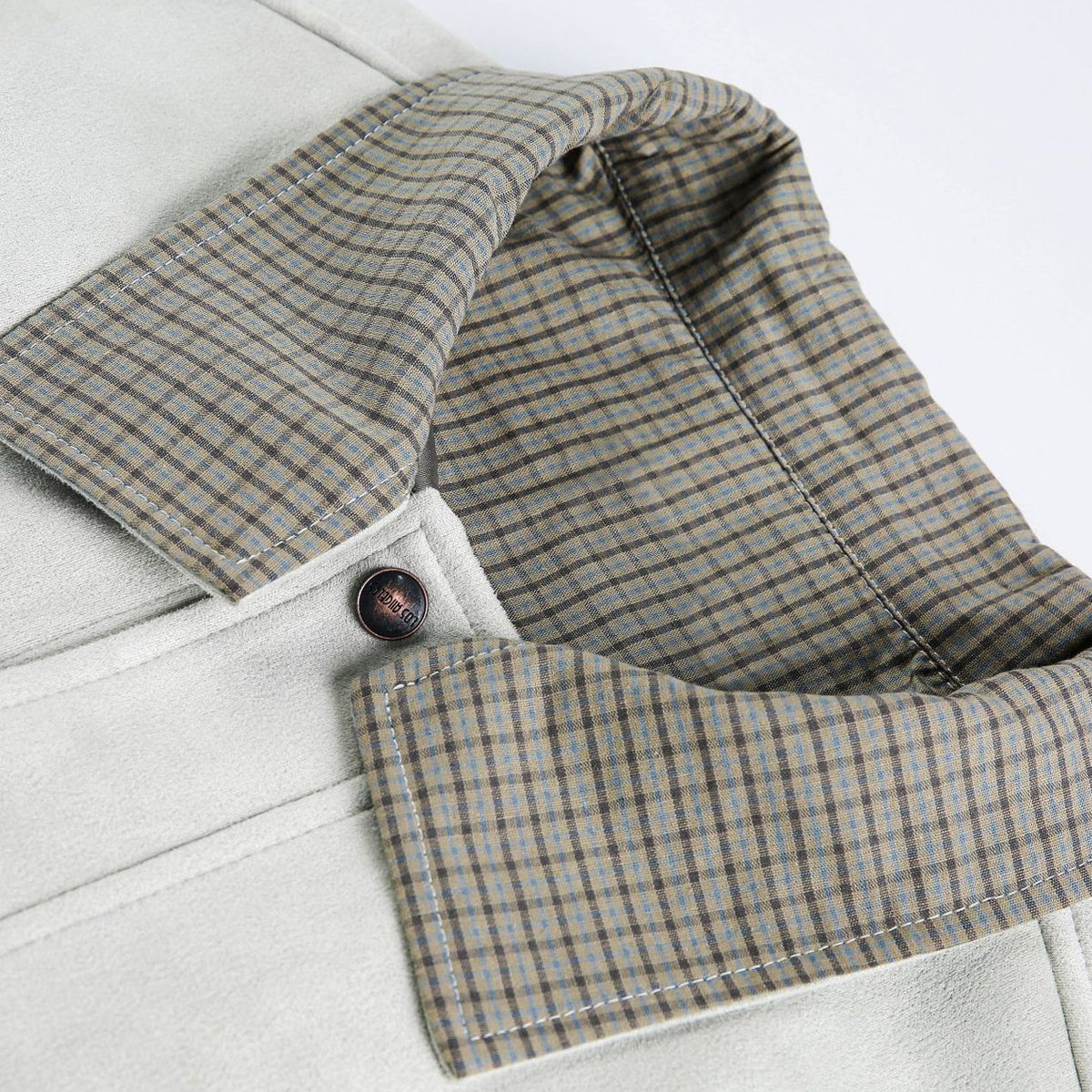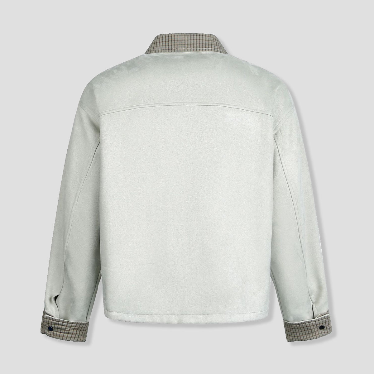 ・衿と袖口にはチェック柄の切り替えが入り、細部まで丁寧に仕上げ。