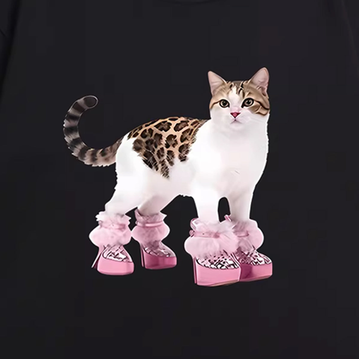 ピンクブーツキャット グラフィックTシャツ