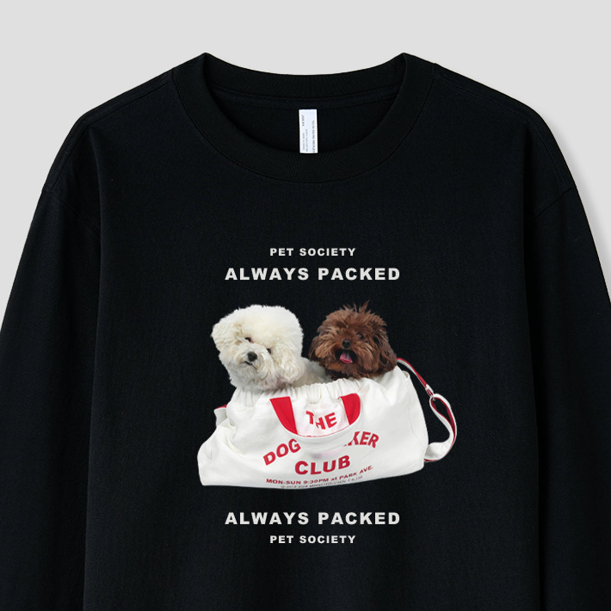 ・バッグにぎゅっと詰まった小さなワンコたちのグラフィック。