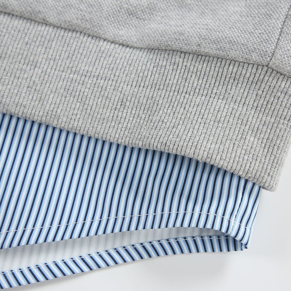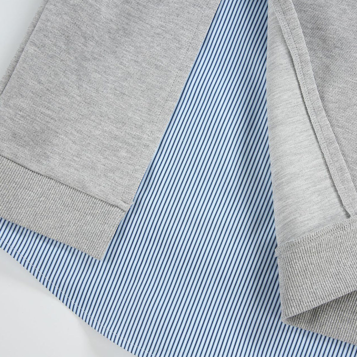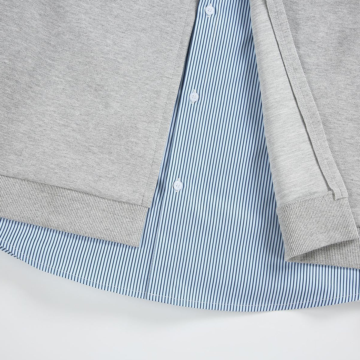 ・ストライプシャツを重ねたようなレイヤードデザイン。