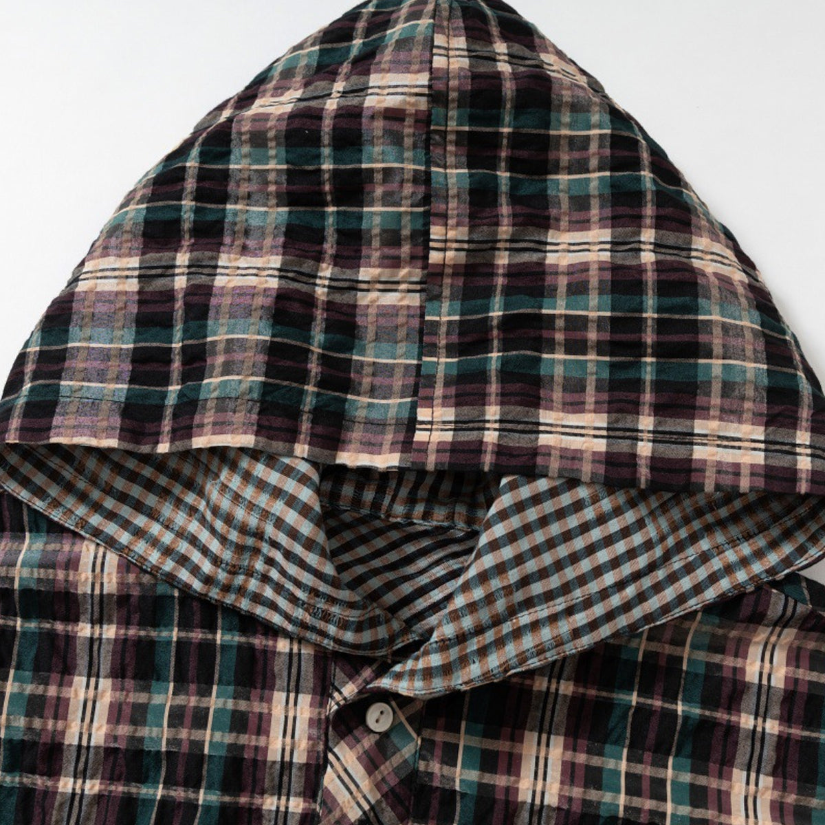 ・クラシックなチェック柄に、フードを組み合わせたデザイン。